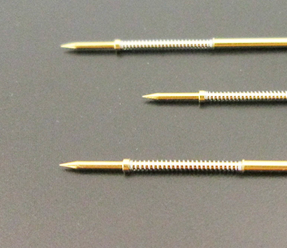 - 一体型で製作されている、外スプリング式のコンタクトプローブです。固有抵抗を低く抑えることができるため、精密測定に適しています。